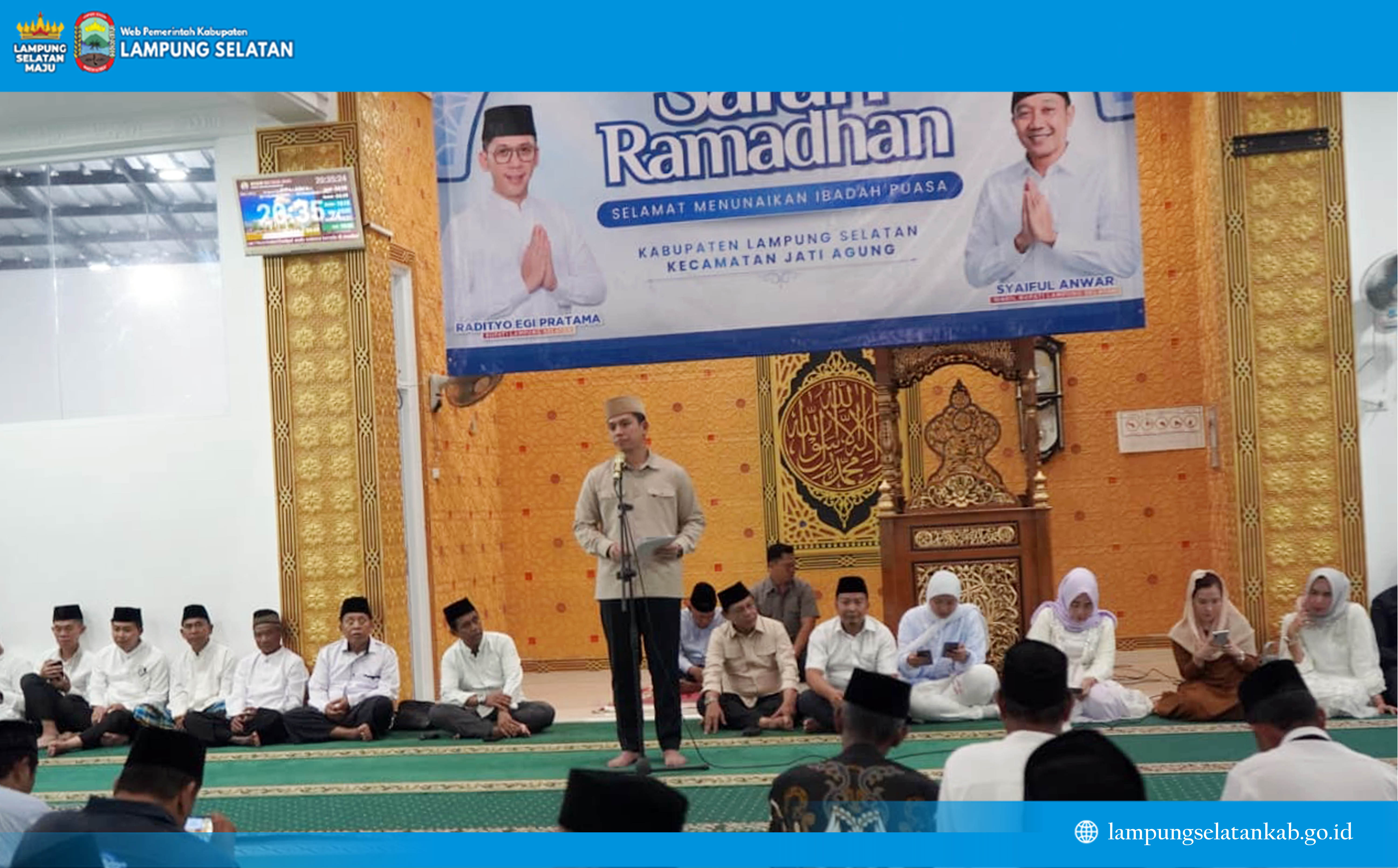 Pesan itu disampaikan Bupati Egi saat memimpin Tim 2 Safari Ramadan 1447 Hijriah di Masjid Miftahul Huda, Desa Jati Mulyo, Kecamatan Jati Agung, Rabu (25/2/2026).